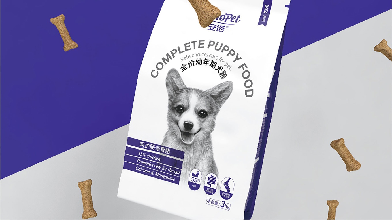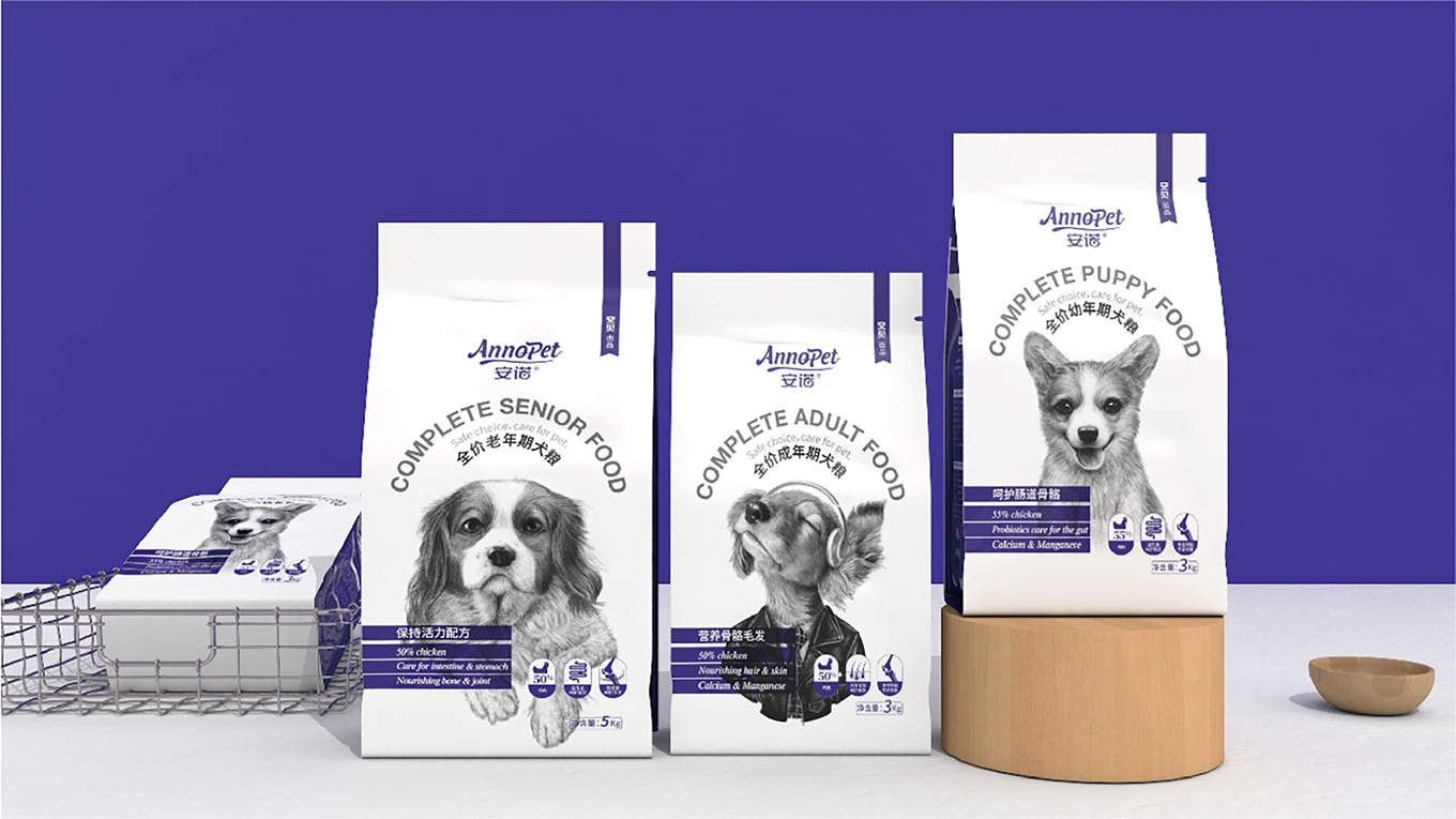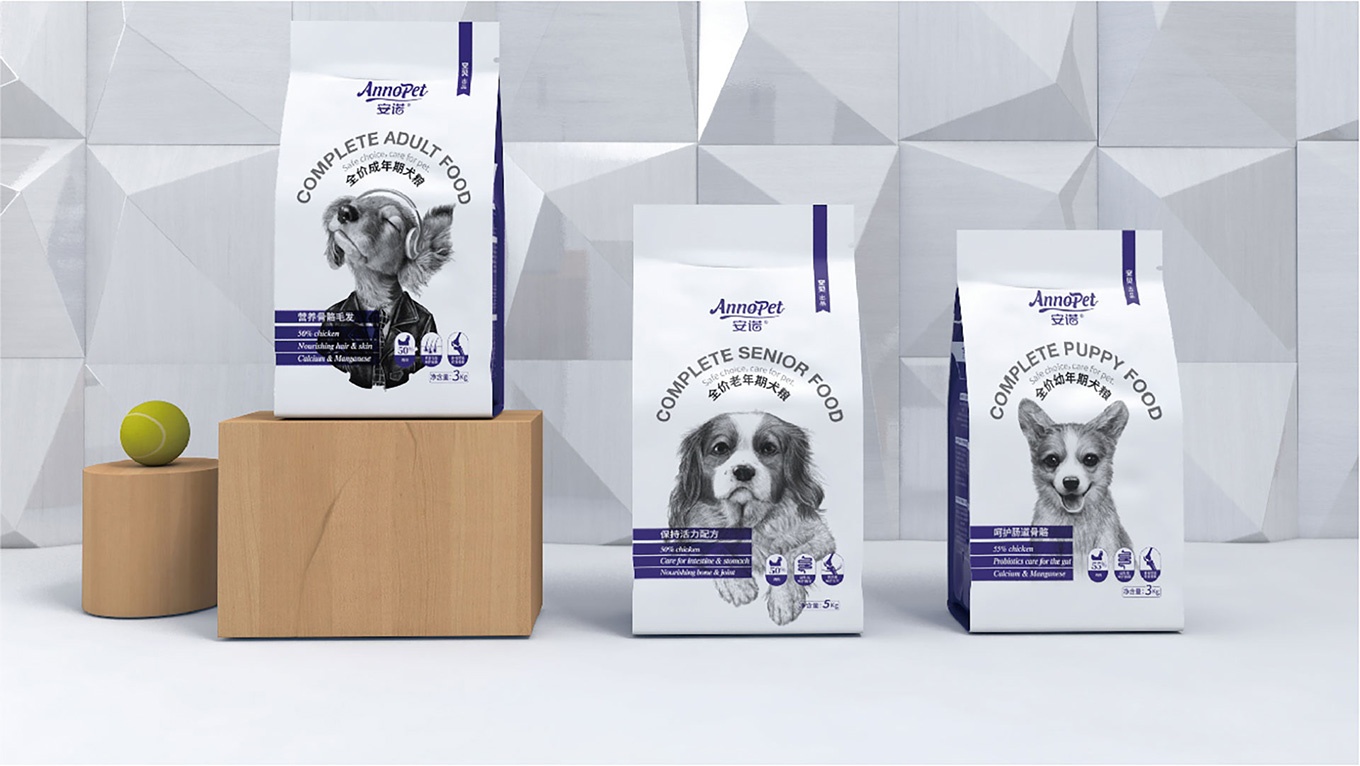 與安諾本次進(jìn)行合作,對(duì)安諾全價(jià)狗糧系列產(chǎn)品進(jìn)行包裝視覺(jué)形象上重塑提升,全力打造出高端、高品質(zhì)的狗糧系列。